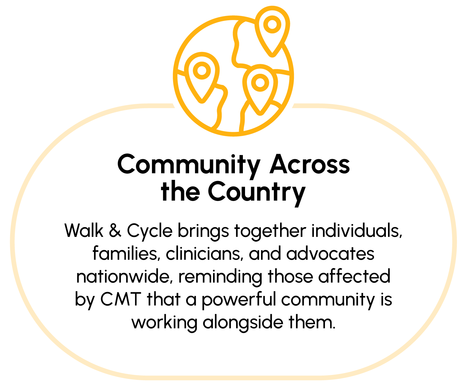 Walk & Cycle 4 CMT is a nationwide, community-powered movement supporting the Charcot-Marie-Tooth Association (CMTA). Across the country, families, friends, and advocates come together to walk, run, cycle, and roll, raising awareness and fueling progress toward treatments and a cure.